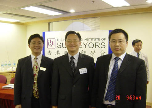 2006年4月永業行總經理潘世炳博士訪問香港期間,與香港測量師學會會長黃仲衡先生(中)和戴德梁行執行董事趙錦權先生合影。