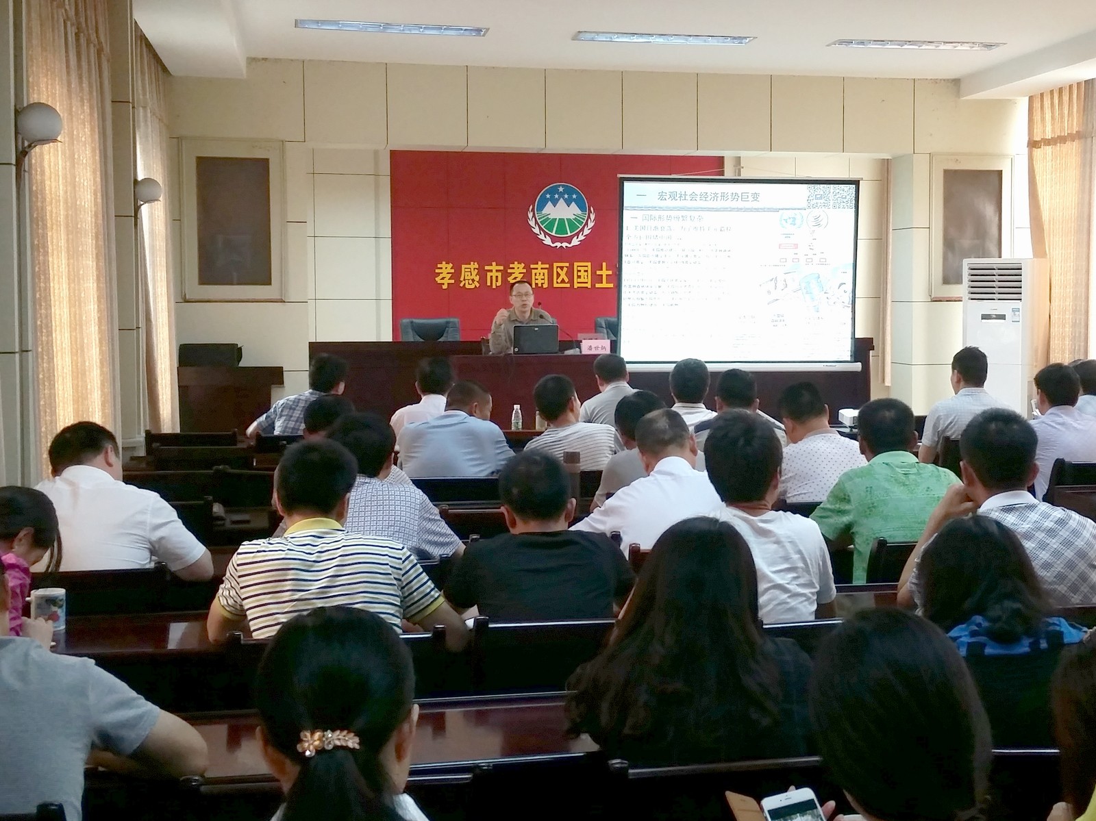 講座由孝南區國土資源局黨組書記、局長孫曉清主持,孝南區國土資源局黨組成員、紀檢組長候軍舟、副局長張亞明、樂志洪、汪澤鵬、總工程師周樂群等領導以及機關全體干部、二級單位負責人及永業行孝感分部負責人近80人參與講座。