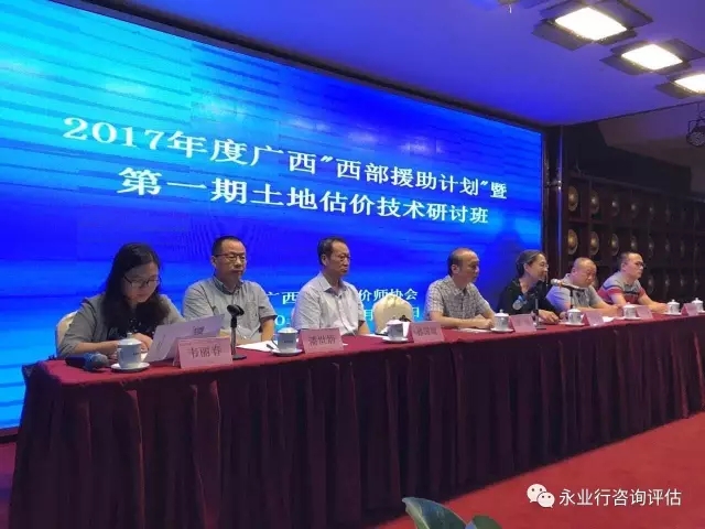 2017年7月13日,廣西土地估價師協會舉行"西部援助計劃"暨第一期土地估價技術培訓班,永業行總裁潘世炳應邀參加并講授《評估機構業務創新管理》課程。培訓班由廣西土地估價師協會副會長兼秘書長韋麗春主持,中國土地估價師與土地登記代理人協會副會長洪亞敏及廣西土地估價師協會會長鄧強參加并在開班儀式上講話,中估協技術協調部朱晨晨及來自廣西的370名土地估價師參加培訓。