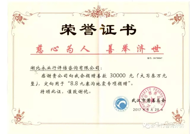 2017年8月8日21時,四川阿壩州九寨溝縣發生7.0級地震,造成19人死亡,247人受傷。災情牽動著全國人民的心。永業行集團在得知災情后,迅速發起了“心系九寨溝”賑災捐款活動,截止8月25日,總部及各分部員工通過現金捐贈、微信轉賬等方式,共計捐贈善款30000元。8月28日,公司助理總裁雷小軍一行專程將募得的善款送到武漢市慈善總會,用于支持九寨溝地震救援和災后重建。