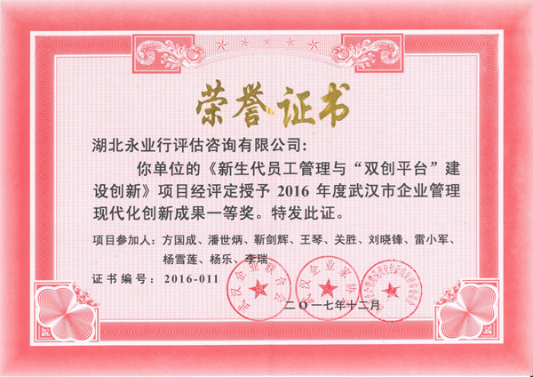2018年1月10日,武漢企業(yè)聯(lián)合會(huì)、武漢企業(yè)家協(xié)會(huì)第二屆理事會(huì)第四次會(huì)議在武漢國際會(huì)展中心召開。永業(yè)行申報(bào)的企業(yè)管理現(xiàn)代化創(chuàng)新成果《新生代員工管理與“雙創(chuàng)平臺(tái)”建設(shè)創(chuàng)新》獲評(píng)一等獎(jiǎng),綜合部總經(jīng)理?xiàng)钛┥彺碛罉I(yè)行參會(huì)并上臺(tái)領(lǐng)獎(jiǎng)。