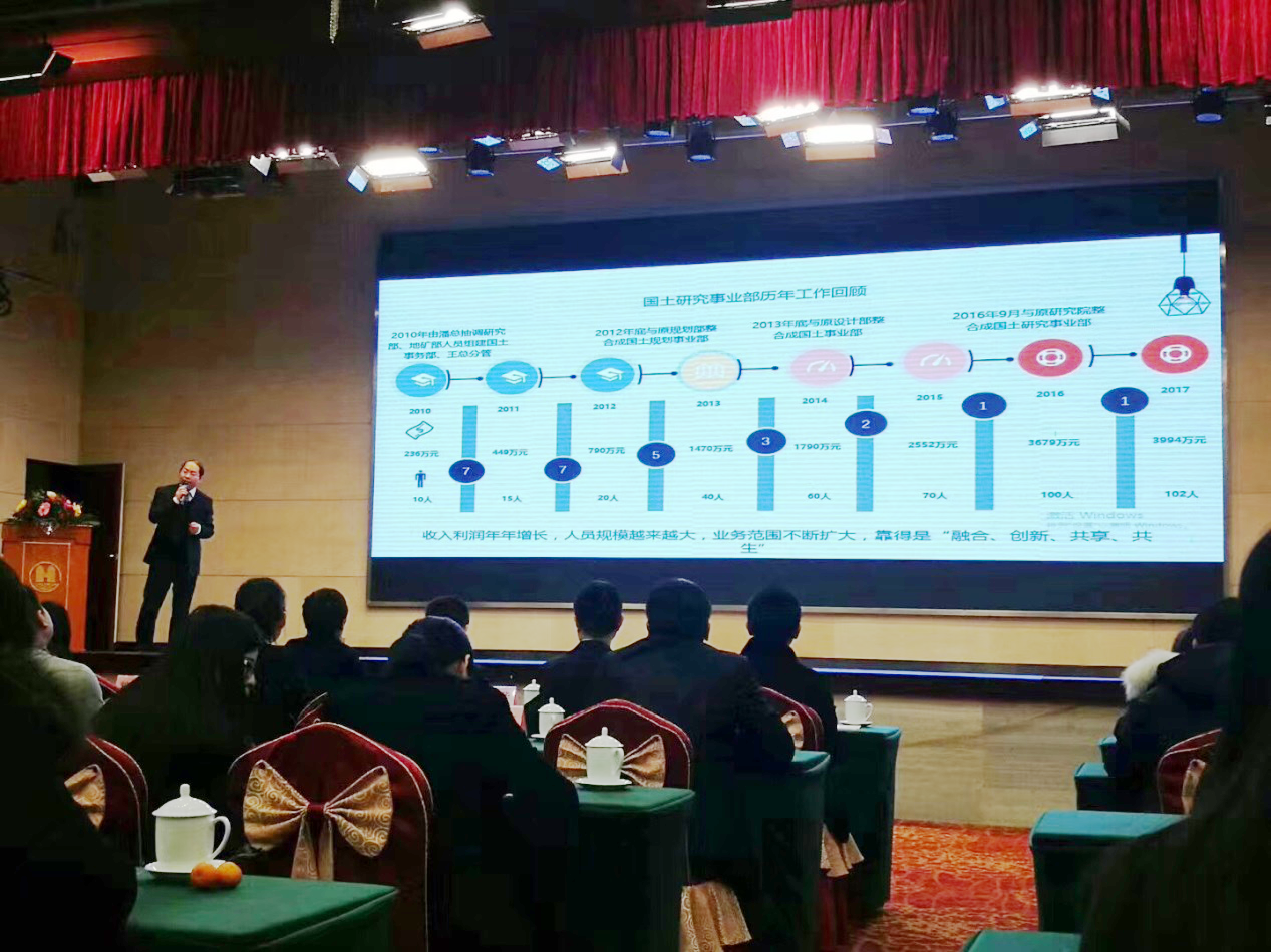 國土業(yè)務(wù)副總監(jiān)兼國土研究事業(yè)部負(fù)責(zé)人吳學(xué)鋒在會(huì)上對(duì)部門歷年工作進(jìn)行了簡(jiǎn)要回顧,生動(dòng)描述了事業(yè)部一路走來不斷變革發(fā)展的過程,并以“融合、創(chuàng)新、共享、共生”為理念詮釋了對(duì)事業(yè)部未來發(fā)展的期許。事業(yè)部市場(chǎng)總監(jiān)金建華、技術(shù)總監(jiān)劉亞玲以及各市場(chǎng)與技術(shù)小組負(fù)責(zé)人分別對(duì)部門的市場(chǎng)展望、技術(shù)變革與人員管理等進(jìn)行深度剖析。