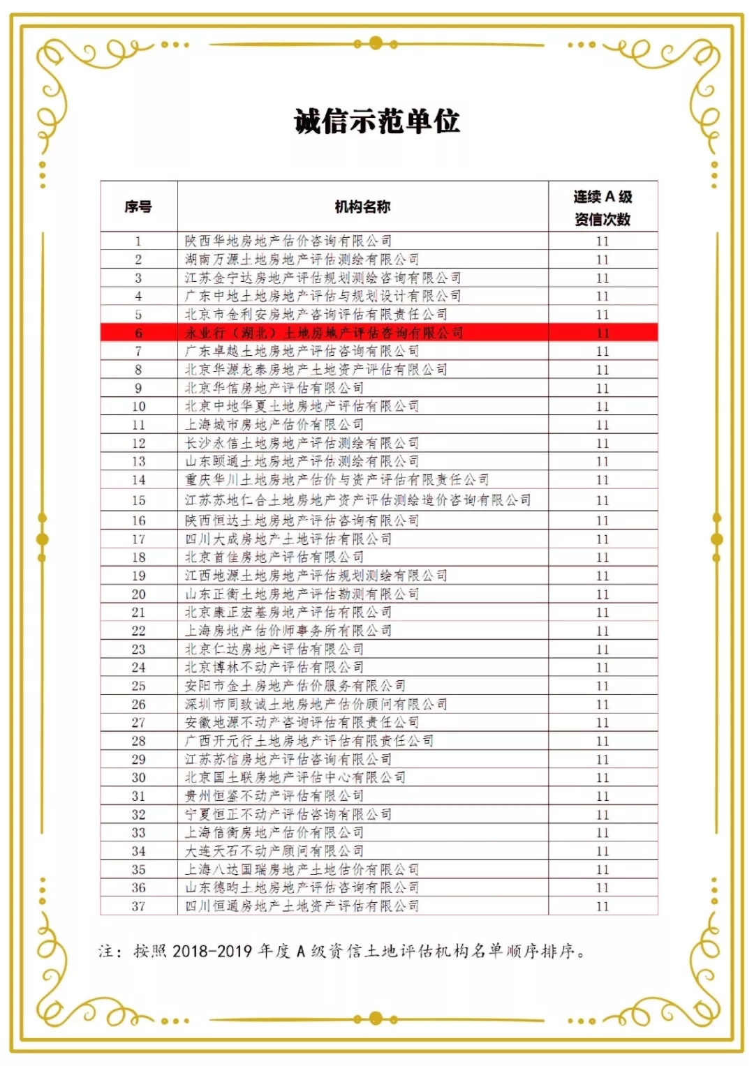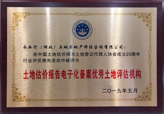 永業(yè)行董事長兼總裁潘世炳當(dāng)選為中估協(xié)第五屆常務(wù)理事,為湖北唯一的常務(wù)理事;在中估協(xié)成立25周年行業(yè)評(píng)優(yōu)推先活動(dòng)中,永業(yè)行獲評(píng)“誠信單位”“土地估價(jià)報(bào)告電子化備案優(yōu)秀土地評(píng)估機(jī)構(gòu)”“中國土地估價(jià)師與土地登記代理人協(xié)會(huì)繼續(xù)教育培訓(xùn)基地”等三項(xiàng)行業(yè)榮譽(yù),為湖北唯一。