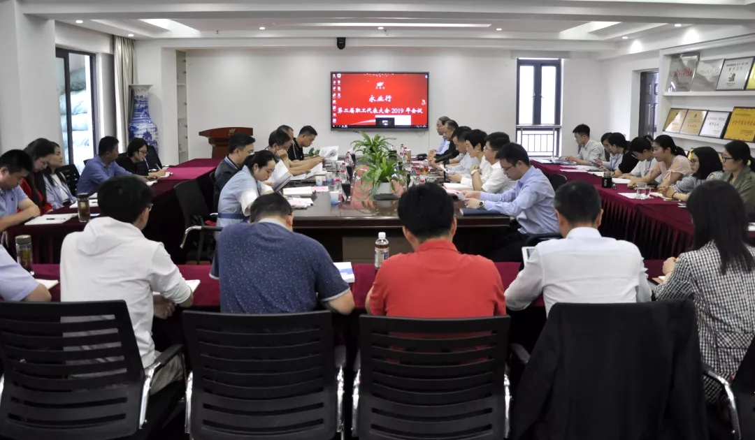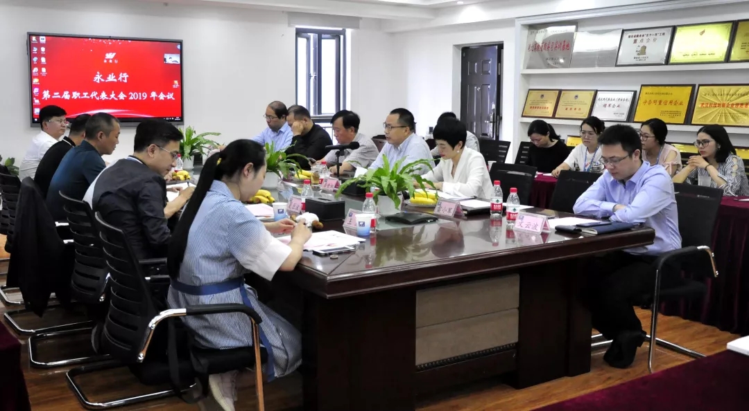 為推動公司民主管理,維護職工的合法權益,充分發揮廣大職工的主觀能動性與創造力,2019年5月30日,永業行第二屆職工代表大會在漢隆重召開,來自集團各單位的46名職工代表齊聚一堂,審議各項制度,共商發展大計。武昌區總工會副主席韓全軍、機關黨支部副書記夏巨波,武昌區工商聯副主席鄭昌雄,徐家棚街道工會主席周濤等領導到會指導。永業行董事長兼總裁潘世炳、副總裁兼工會主席靳劍輝、各高管以及各職能部門負責人出席了會議,會議由執行總裁王琴主持。