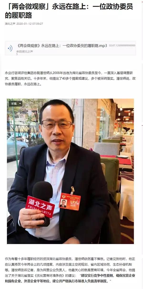 2020年1月11日至15日,政協(xié)湖北省十二屆三次會(huì)議在武漢召開。省政協(xié)委員、省房協(xié)會(huì)長(zhǎng)、永業(yè)行董事長(zhǎng)兼總裁潘世炳參加會(huì)議,并向大會(huì)提交了《關(guān)于推進(jìn)湖北省實(shí)施生態(tài)補(bǔ)償?shù)慕ㄗh》《關(guān)于推進(jìn)國土空間規(guī)劃的幾個(gè)建議》《關(guān)于湖北省落實(shí)<優(yōu)化營(yíng)商環(huán)境條例>的幾點(diǎn)建議》《深化區(qū)域協(xié)同 推動(dòng)鄂黃黃臨空協(xié)同發(fā)展軸建設(shè)的幾點(diǎn)建議》等多份提案,人民網(wǎng)、《中國經(jīng)營(yíng)報(bào)》、《湖北日?qǐng)?bào)》、湖北廣電、湖北之聲、長(zhǎng)江云等多家媒體從多個(gè)角度對(duì)潘世炳委員的提案進(jìn)行了深度挖掘和報(bào)道。