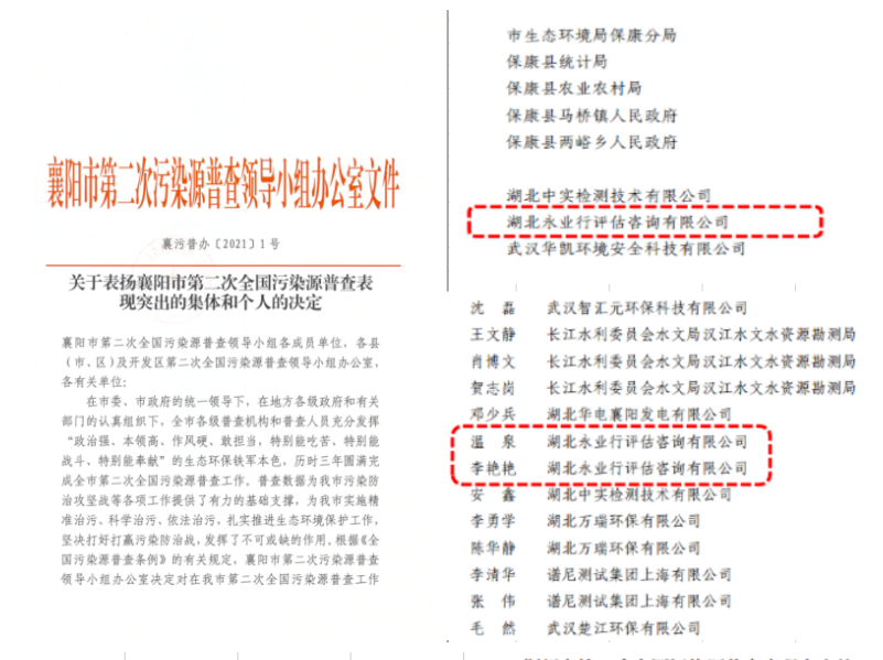 全國第二次污染源普查(以下簡稱“二污普”)是一項調查重大國情省情的基礎工作,是推進生態環境保護的重要舉措。自2017年開始,永業行“二污普”專業團隊承接了湖北省武漢市、荊州市、襄陽市、咸寧市、恩施州等18縣(市、區);海南省三亞市、文昌市等6市縣區普查工作。其中參與入戶7個,參與質量評估17個,合計24個地區。團隊歷時三年,以專業的技術服務,高質量完成普查工作,為加強污染源監管、改善環境質量、防控環境風險、服務環境與發展綜合決策提供了重要依據,獲得上級普查機構的認可,受到國家、省市普查辦發文表揚,服務的市縣更是獲得國家和省多項表現突出集體和個人的表揚。
