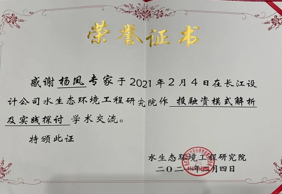 2021年2月4日,長江勘測規劃設計研究院組織召開“投融資模式解析及實踐探討”培訓交流會。永業行投資咨詢事業群全過程咨詢事業部副總經理楊鳳受邀作投融資模式研究、實踐探討及案例分析交流。