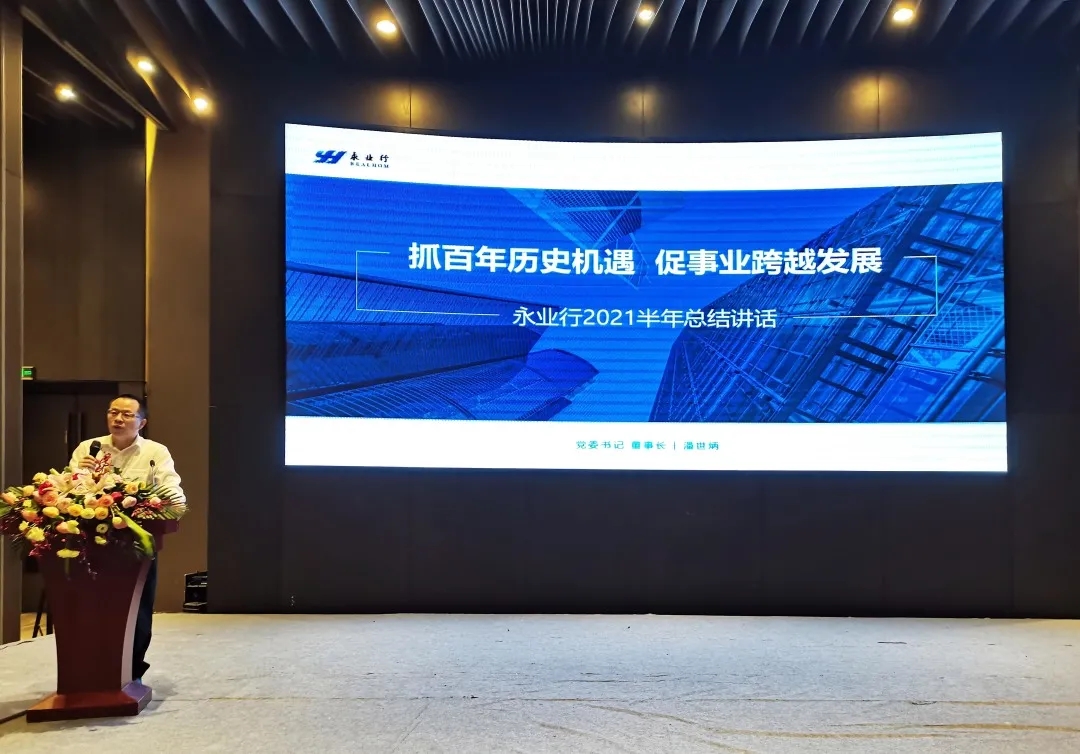 2021年6月27-28日,永業(yè)行2021年度中期工作總結(jié)會議在海南博鰲亞洲論壇國際會議中心隆重召開,全面總結(jié)上半年工作,研判當(dāng)前宏觀經(jīng)濟(jì)形勢,深入分析工作中的問題與不足,扎實(shí)部署下半年重點(diǎn)工作。永業(yè)行董事長潘世炳出席會議并作重要講話,輪值總裁王琴作半年度工作報告,副總裁雷小軍、文云波、吳學(xué)鋒,助理總裁金建華、雷小明及各部門負(fù)責(zé)人、班子成員、年度標(biāo)兵代表等70余人參加會議。
