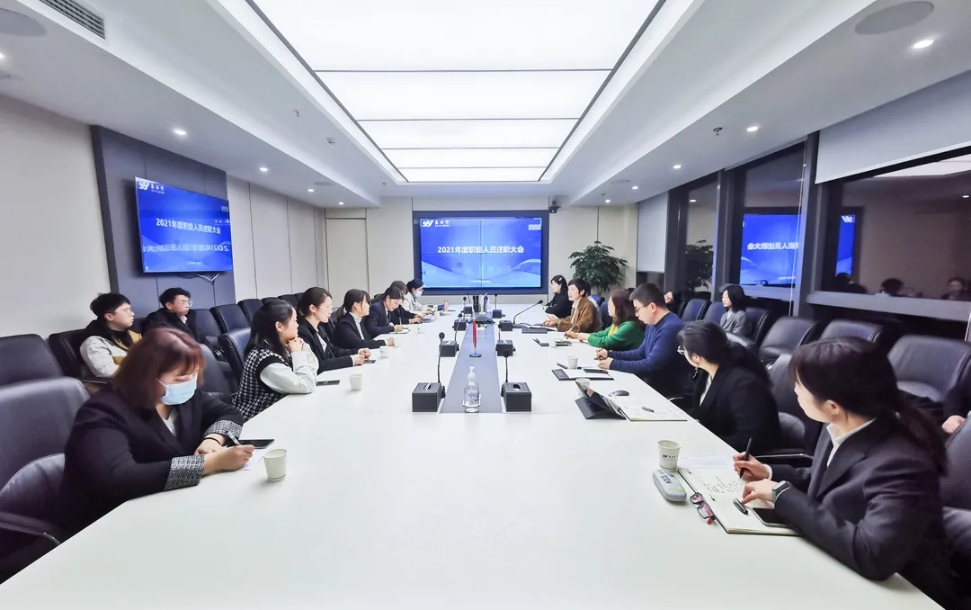 2022年1月5日,永業行召開2021年度職能人員述職大會。董事長潘世炳、輪值總裁王琴、全體高管、各業務部門負責人代表、人事薪酬委員會代表、優秀員工代表以及全體職能人員共計100余人參加了會議。