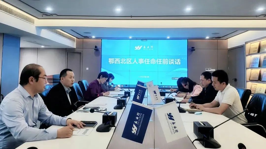 2022年4月28日,永業行組織鄂西北區擬任職管理干部和員工進行了任前談話,公司黨委書記、董事長潘世炳,輪值總裁王琴,副總裁吳學鋒,組織人事部總監孫慧和鄂西北區全體員工參加了會議。