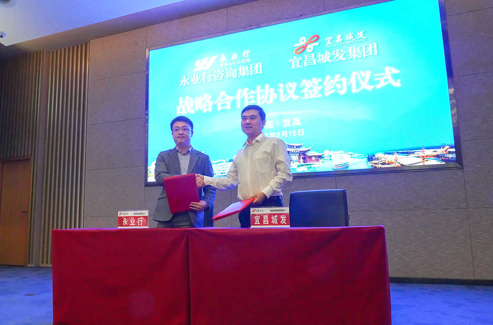 2022年5月15日,永業行集團與宜昌城發集團在宜昌舉行戰略合作協議簽約儀式。宜昌城發集團黨委書記、董事長殷俊,黨委副書記、總經理徐強,黨委委員、紀委書記劉仁,永業行副總裁文云波,投資咨詢事業群全過程咨詢事業部總經理楊鳳等出席簽約儀式。