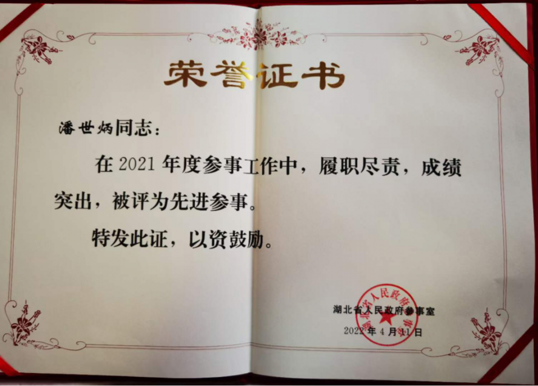 湖北省政府參事、永業(yè)行董事長(zhǎng)潘世炳獲評(píng)先進(jìn)參事