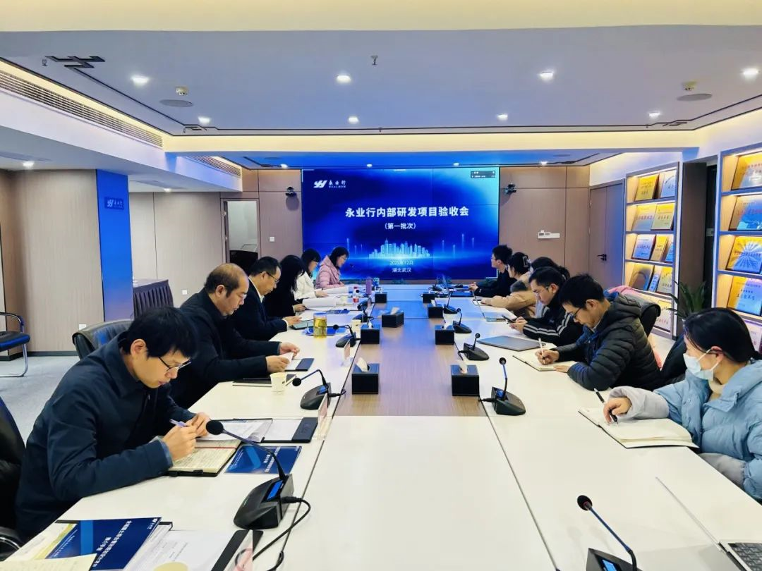 2023年12月15日,永業行召開2023年度第一批次內部研發項目驗收會,永業行黨委書記、董事長潘世炳,常務副總裁吳學鋒以及行業專家、高校教授、課題研發團隊等通過線上線下方式參會。