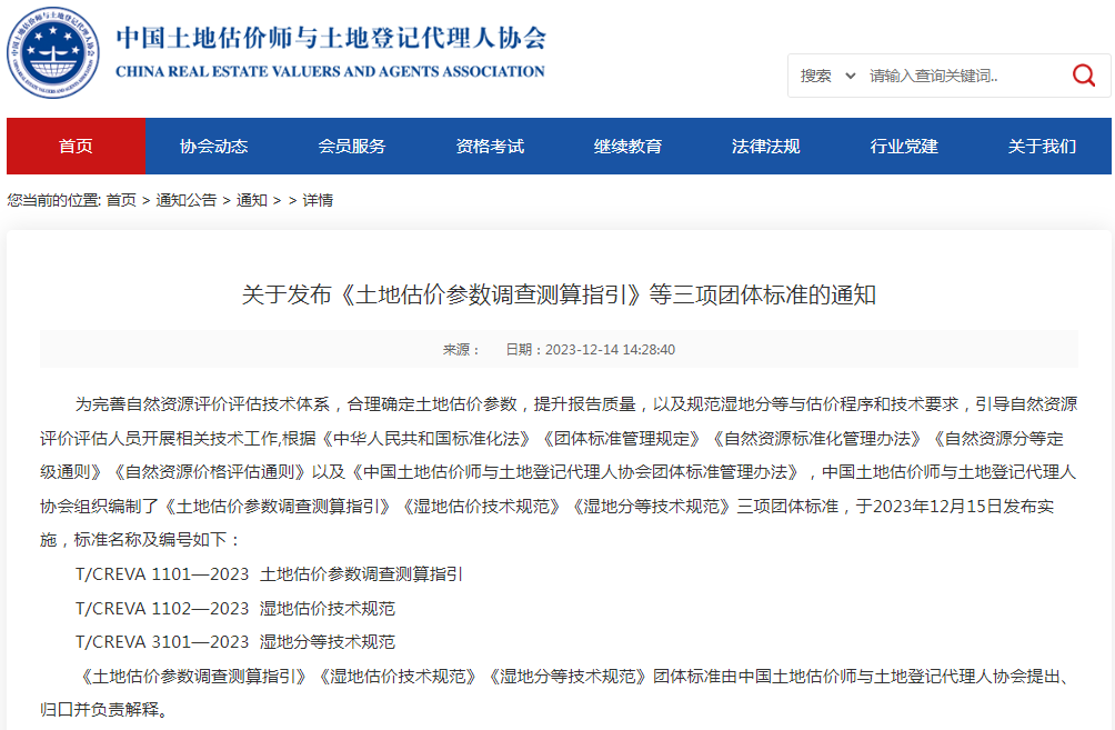 12月14日,中國土地估價師與土地登記代理人協(xié)會(以下簡稱“中估協(xié)”)發(fā)布三項團體標準,永業(yè)行參編的《土地估價參數(shù)調(diào)查測算指引》(T/CREVA 1101—2023)于2023年12月15日發(fā)布實施。