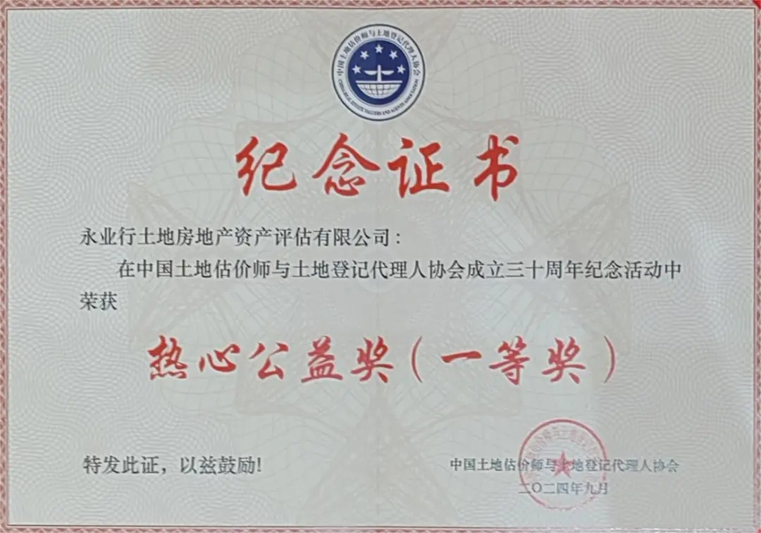 在此次評優活動中,永業行憑借其卓越的綜合實力與積極的社會貢獻,再次收獲了行業內的高度認可,獲評熱心公益獎、誠信示范機構獎、業務拓展獎、土地估價報告電子化備案優秀機構獎等四項單位獎項,充分展現了公司在行業內的領先地位與良好口碑。