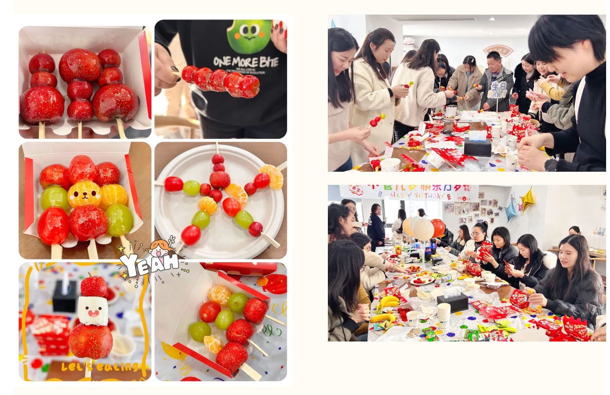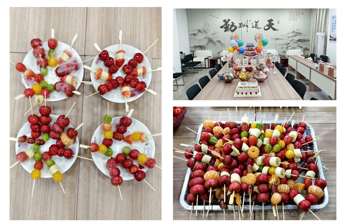 生日會活動后,四季度壽星們在員工餐廳參加了冰糖葫蘆DIY活動,現場準備了多種水果: