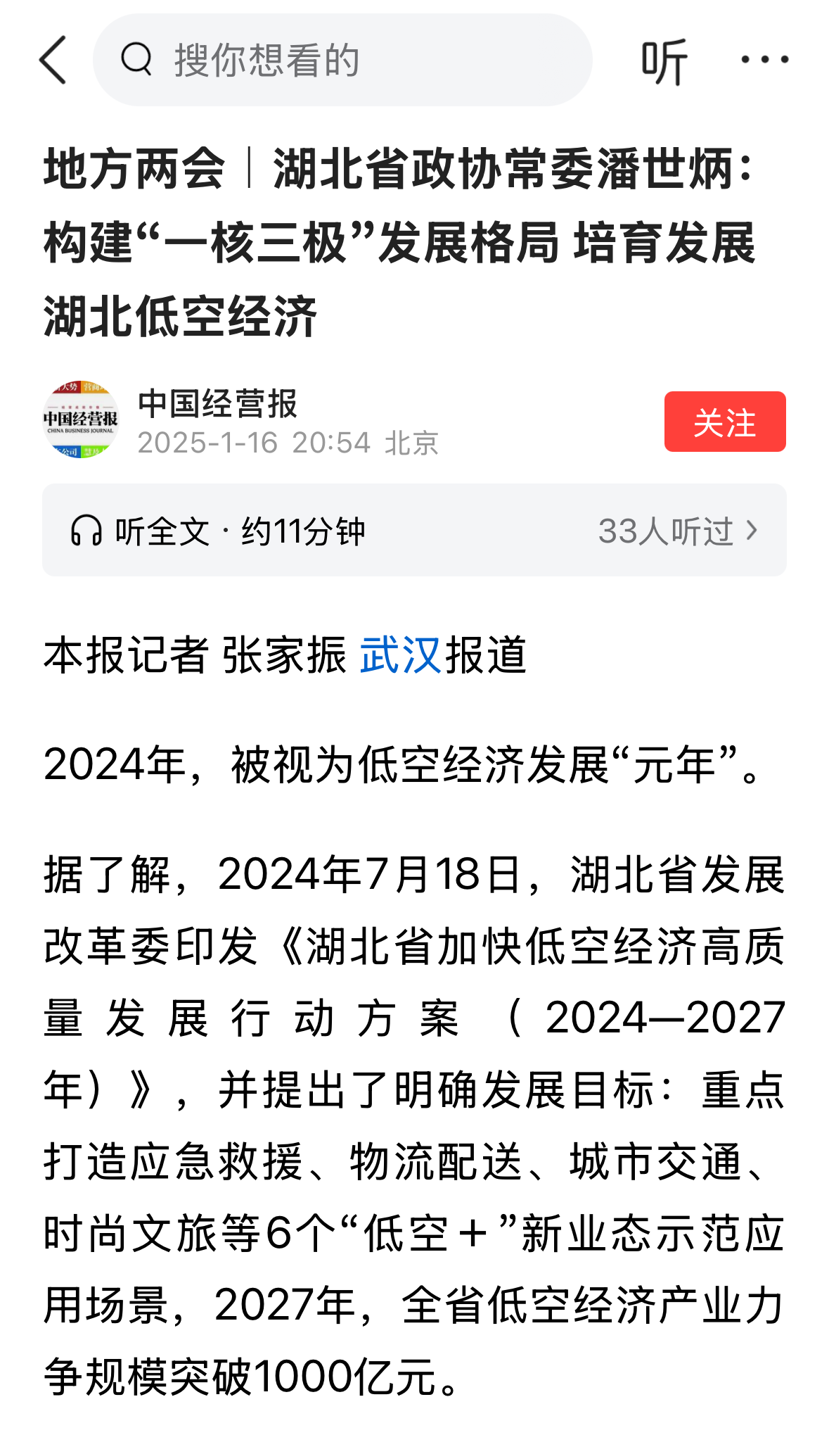 會議期間,潘世炳針對《關于著力培育湖北低空經濟的幾點建議》接受《中國經營報》、湖北畫報記者采訪,就低空經濟產業面臨的諸多發展難題進行深入解析,并結合困擾行業發展的空域“多頭管理”與“管理空白”現象提出了建立完善低空經濟法規政策及標準體系、構建低空經濟規劃和協作管理機制、提高低空經濟項目謀劃推進質量、加強低空經濟財稅和金融支持、引導發展“低空+”新模式新業態、低空智聯和數字風控建設等針對性建議。