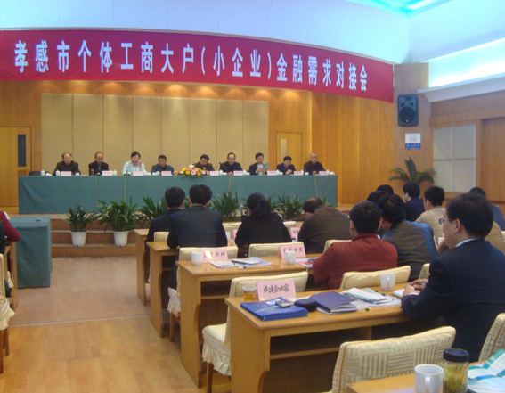 4月20日,由民建孝感市委會發(fā)起,民建孝感市委會、市工商局、市個(gè)私協(xié)會、市農(nóng)行等單位聯(lián)合舉辦的孝感市個(gè)體工商大戶(小企業(yè))金融需求對接會在孝感賓館召開。永業(yè)行孝感分部總經(jīng)理張立勝應(yīng)邀參加了會議。