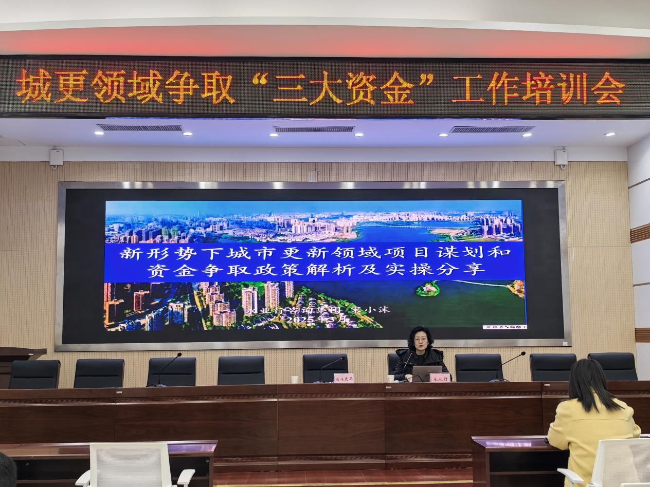 2025年3月10日,武漢市漢陽區住房和城市更新局組織召開“城更領域爭取‘三大資金’工作培訓會”,區住更局黨組成員、副局長張茜主持會議。永業行投資金融事業群金融事業部執行總經理宋小沫受邀作新形勢下城市更新領域項目謀劃和資金爭取政策解析及實操分享。