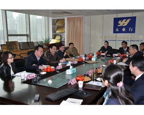 永業行董事長方國成,總裁潘世炳,副總裁靳劍輝、高軍、李翔、助理總裁田新丑、王琴,研究院副總經理唐佳林等熱情接待了劉處長一行。觀看永業行專題片后,董事長方國成詳細介紹了公司的基本情況,發展歷程及長遠規劃,總裁潘世炳就社會責任、品牌建設、永業行指數課題研究、辦公系統建設等內容與各來訪領導進行了交流。劉處長等對永業行人不斷開拓、謀求發展的精神予以肯定,表示將在永業行指數建設等研究領域為永業行提供更多的支持,也希望永業行繼續加強管理、深化研究領域、不斷做大做強,創立中介服務行業的品牌企業形象。