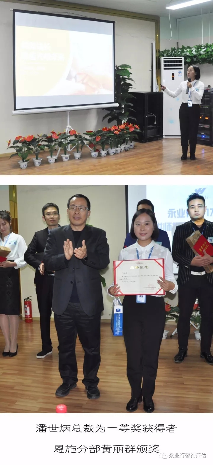 總裁潘世炳在點評中表示,演講比賽作為永業行傳統型活動,旨在廣開言路、發掘人才,為永業行青年員工提供展示才能、提升自我的平臺。為更進一步充實永業行學院講師庫,永業行在演講比賽基礎上創新開展了講師擂臺賽,各位參賽選手結合各自深耕的專業,迸發出許多創新思維,提出了很多有利于永業行業務發展的建設性思路。希望各參賽選手以此為平臺,相互學習、交流,在今后的工作中創造出更大的業績。