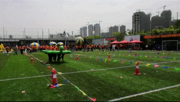 本屆趣味運動會共設置了6個比賽項目,考驗協作的蛟龍出海、活潑調皮的龜兔賽跑、驚險刺激的運轉乾坤、奮勇沖刺的障礙接力、齊心協力的旱地龍舟、拼盡全力的拔河比賽……比賽過程挑戰與趣味并存,不僅鍛煉了團隊協作能力,更是對隊員們體力、耐力的考驗。比賽現場,運動健兒的激烈角逐,激動人心;觀賽團隊的吶喊助威,震耳欲聾,大家不顧被烈日曬紅的皮膚、被汗水浸透的衣衫,拼盡全力為團隊榮譽而戰,沉浸在運動帶來的激情與快樂中。在沖過終點的瞬間,落后時的相擁鼓勁,勝利后的擊掌慶祝,作為永業行人的自豪感與榮譽感油然而生。一輪輪激烈的角逐后,各組隊員由比賽之初時的“矜持”快速發展成為相擁慶祝的戰友。如果說一場比賽建立不了感情,那么,就來兩場?