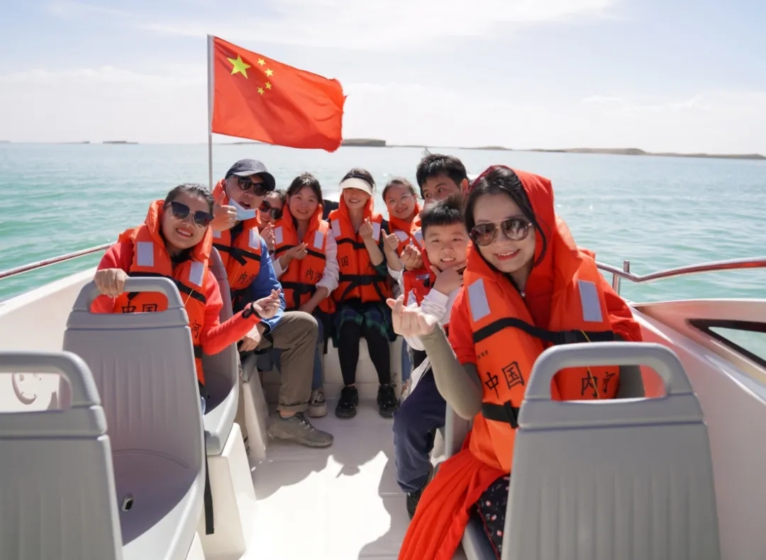 除了最美青海湖,此行還游覽了有“青海馬爾代夫”之稱的西臺吉乃爾湖和翡翠湖。翡翠湖湖水顏色如翡翠般美麗,像是上天賜予大自然的一塊綠寶石。西臺吉乃爾湖則是方圓百里大漠戈壁無人區的珍寶明珠,得益于大自然的鬼斧神工,一望無際的蔚藍湖面讓人流連忘返。大家在此乘船、游玩、合影,享受大自然恩賜的同時,不忘激勵奮進,描繪永業行的美好明天,誓以更加積極的姿態投入到今后的工作之中。