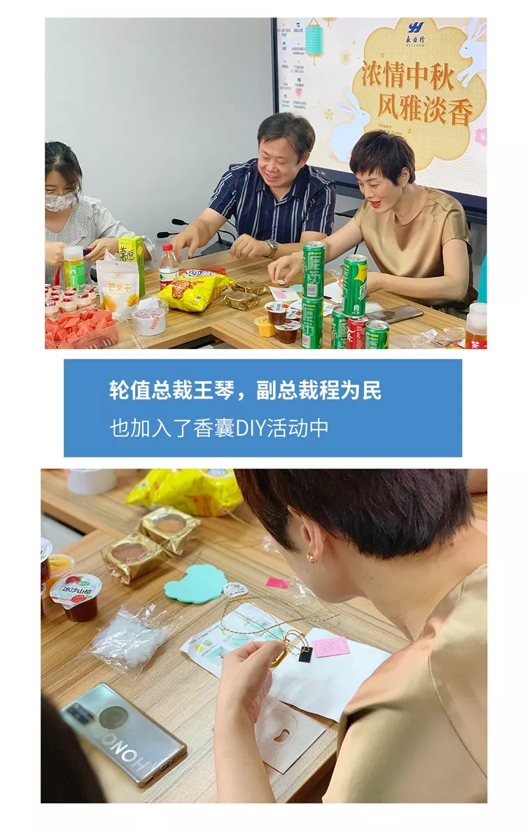為弘揚中華傳統(tǒng)文化,營造濃厚的節(jié)日氛圍,2021年9月17日,永業(yè)行總部舉辦“濃情中秋 風(fēng)雅淡香”香囊DIY活動,水岸國際、綠地銘創(chuàng)、匠心城等三個辦公區(qū)的小伙伴踴躍報名,積極參加了當(dāng)天的活動,用香氣怡人的香囊迎接中秋節(jié)的到來。