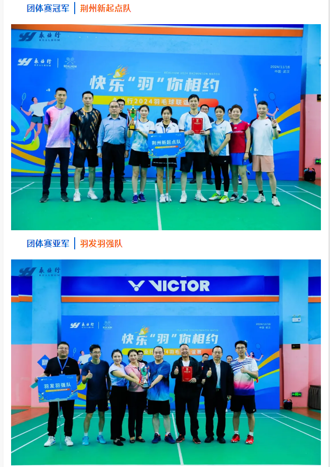 經(jīng)過緊張激烈角逐,荊州新起點隊、羽發(fā)羽強隊、大地飛羽隊分別奪得團體賽冠亞季軍。單項賽冠亞季軍也悉數(shù)產(chǎn)生。本次比賽還設置了最佳支持獎、最佳人氣獎、最佳組織獎,分別由武業(yè)永昌隊、建羽飛翔隊、浪淘沙隊獲得。武昌區(qū)人大主任胡太榮、永業(yè)行董事長潘世炳及相關領導分別為獲獎選手及團隊頒獎。