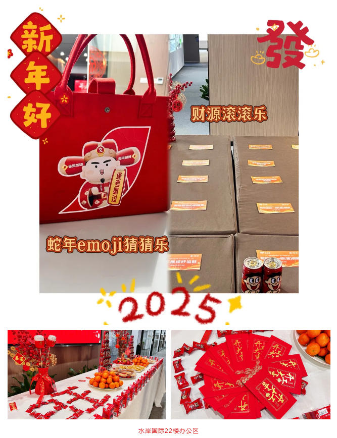 本次“開門紅”系列活動,各部門、分部、辦公區(qū)設置了新年紅包墻以及蛇年emoji猜猜樂、財源滾滾樂等創(chuàng)意開工小游戲,寓意新的一年,歡樂領取蛇年第一封紅包祝福,懷揣連連鴻運,活力滿滿向前沖。